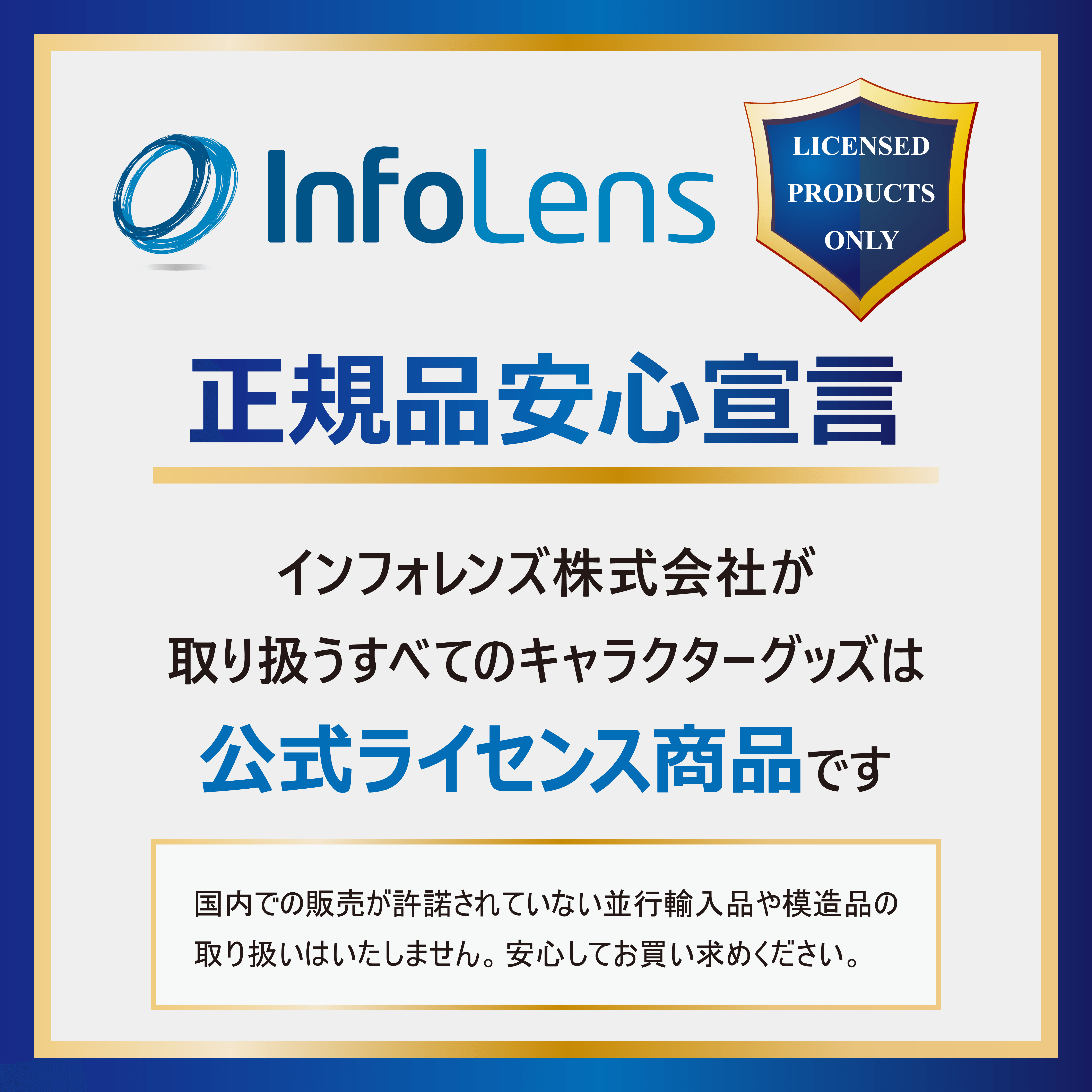 インフォレンズ株式会社は、世界的な人気コンテンツから厳選した公式ライセンスグッズを取り扱う正規販売代理店です。輸入商品及び自社製品を含め約500種類の商品を取り扱い、全国の量販店向けの卸売販売やオンラインショップ・直営店の運営を行っております。