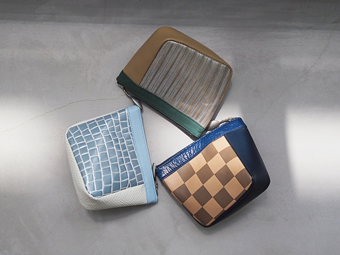 過去のシーズンコレクションで使用し、余剰となったレザーを組み合わせ、遊び心のある全く新しいアイテムに生まれ変わらせました。