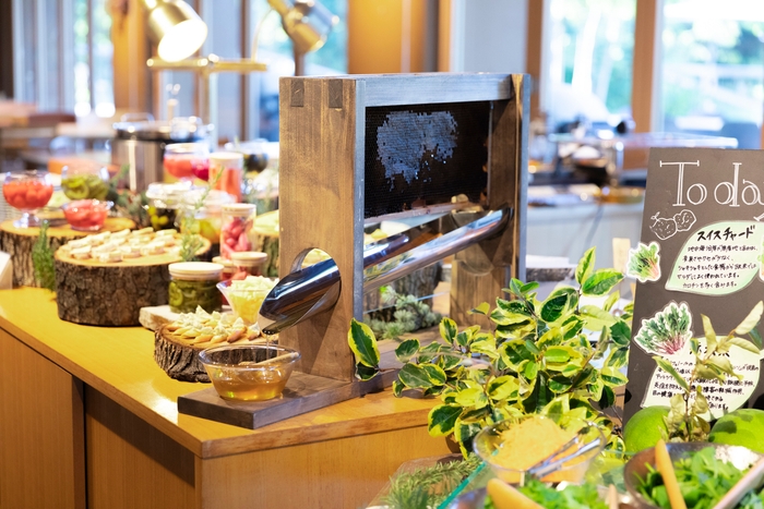 ガーデンブレックファーストには、舞洲のガーデンで育てられた花々から採取された「舞洲ローカルハニー」も使用。この特別な蜂蜜は、フレンチトーストやサラダ、チーズなどに添えられ、料理に自然な甘さと豊かな風味を加えます。体にも優しいこのハニーで、優雅な朝のひとときをお楽しみください。
