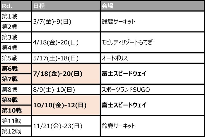 このパートナーシップをきっかけに、今後様々な連携を図ってまいりますが、本年まずは、富士スピードウェイでの併催大会を軸に、主にプロモーション面で連携を強化してまいります。