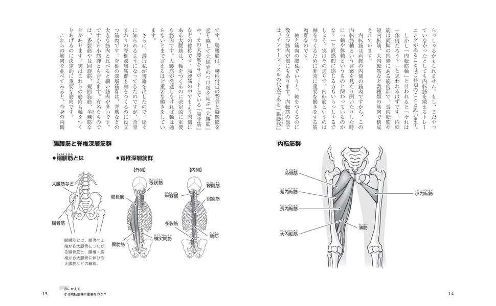 本書で取り上げる内転筋軸に関わる筋肉は、内転筋とその拮抗筋である外旋筋群になります。そして「内転筋および内転筋軸」がスポーツのパフォーマンスにおいてなぜ重要なのか、その解説をするとともに具体的なトレーニングも紹介します。