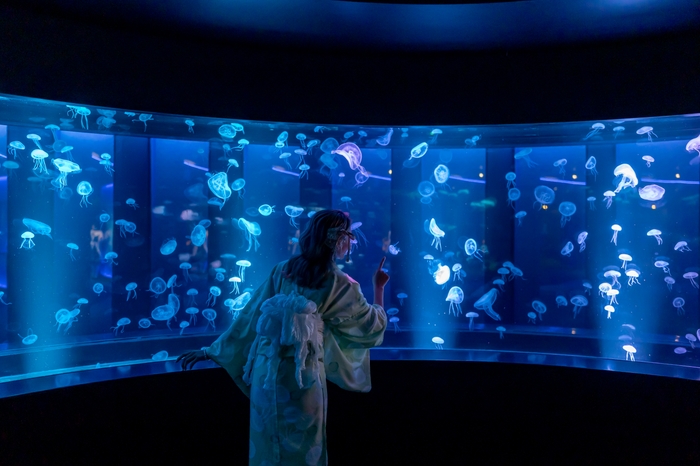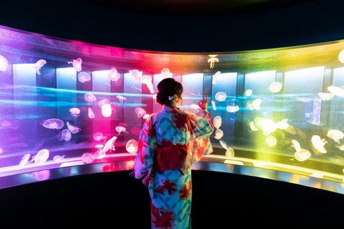 ぜひ夢館のオリジナルクラゲ柄の浴衣×クラゲ帯結びを着用して、京都水族館のクラゲを見に行ってください。クラゲづくしで、癒しと高揚感の両方を味わえる至福のひと時を過ごせると思います!