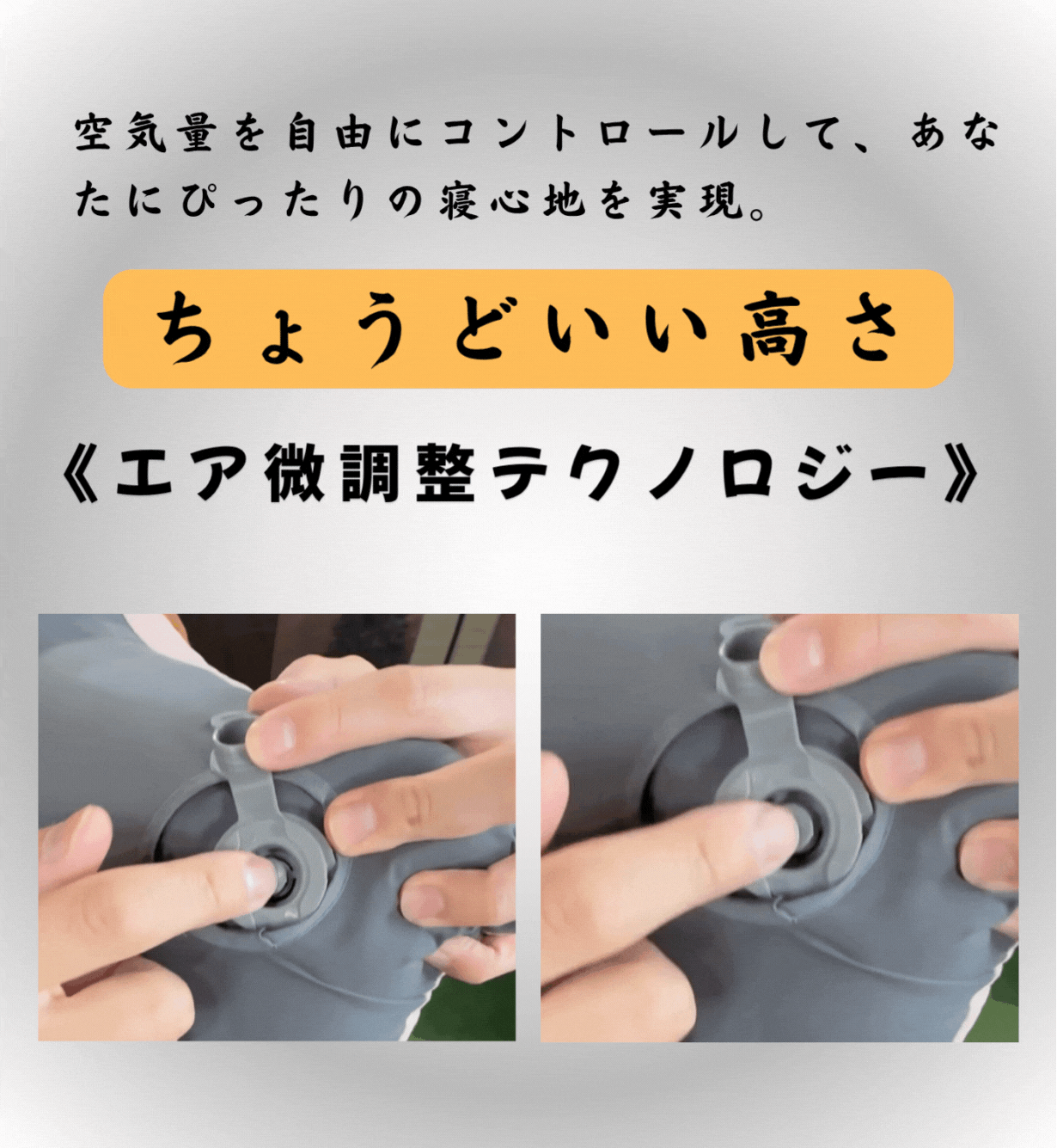この3層構造によって、よくあるエア枕にありがちな「音が気になる」「ふわふわして安定しない」「空気が抜ける」という悩みをすべて解決。