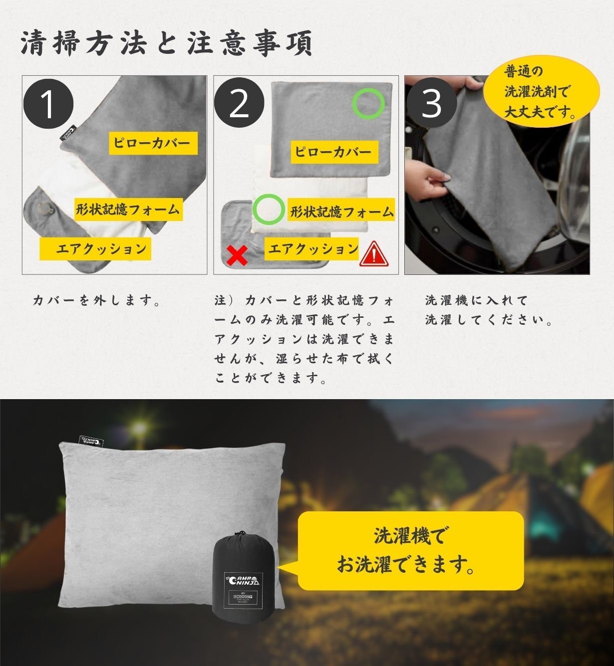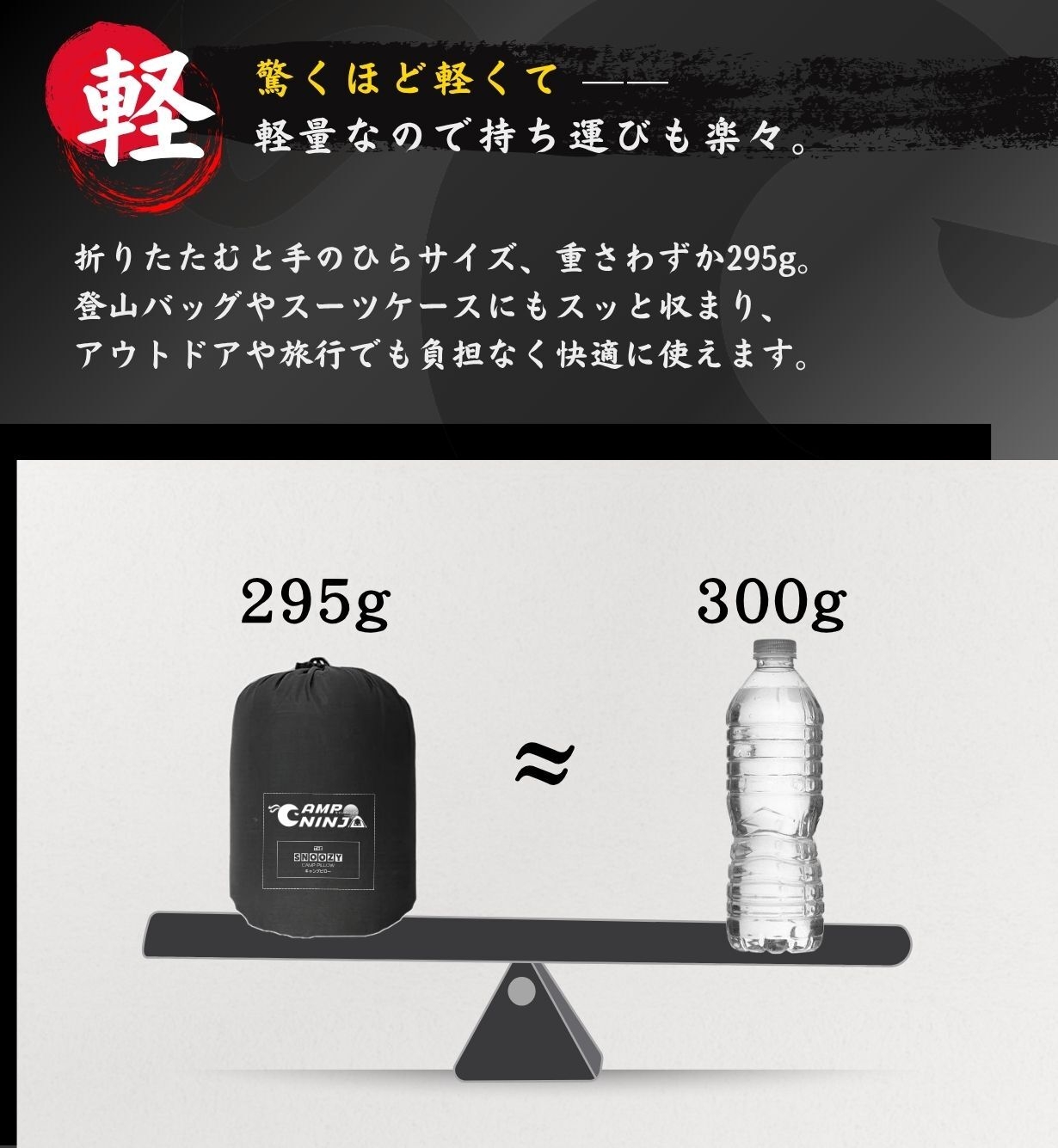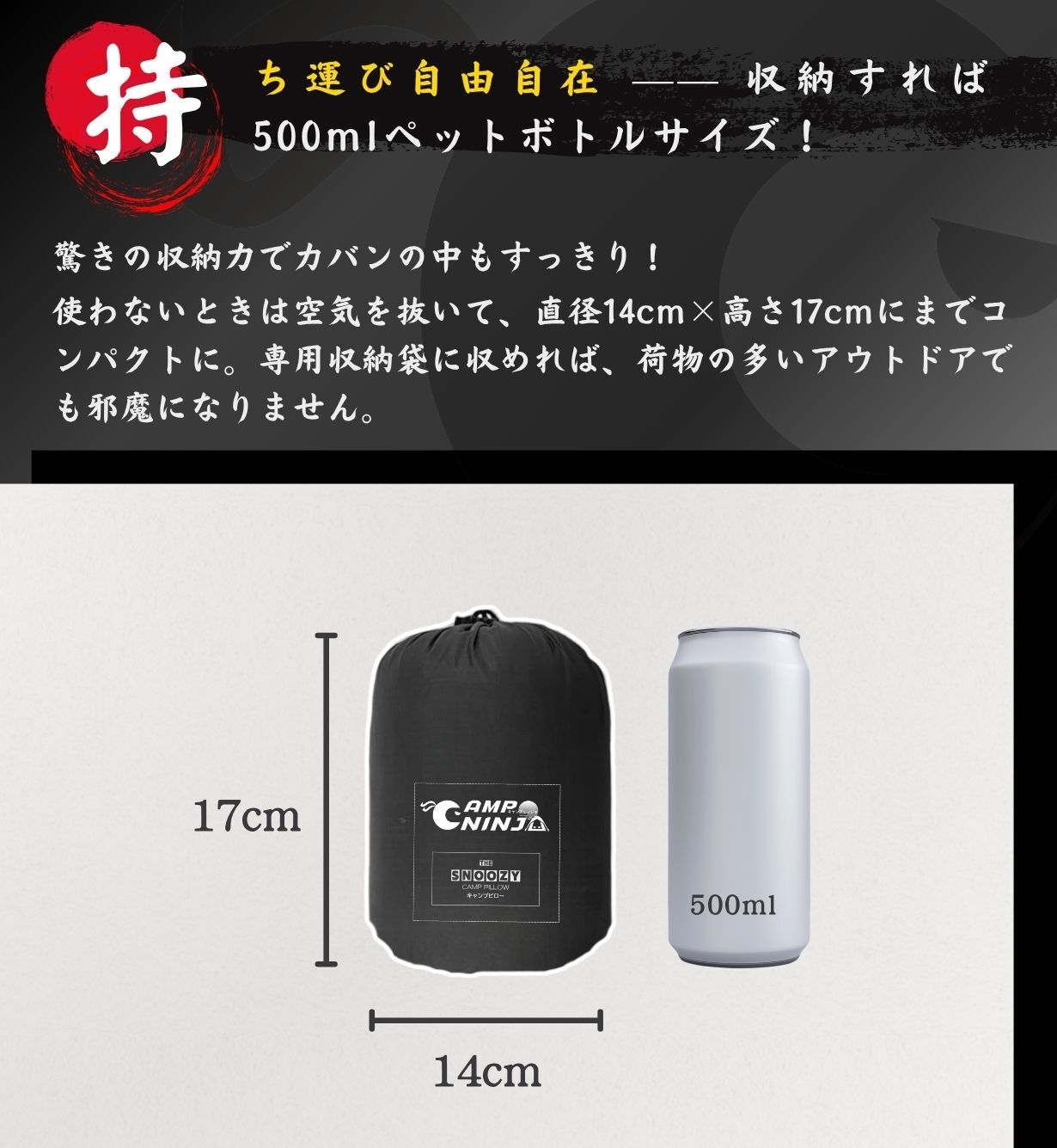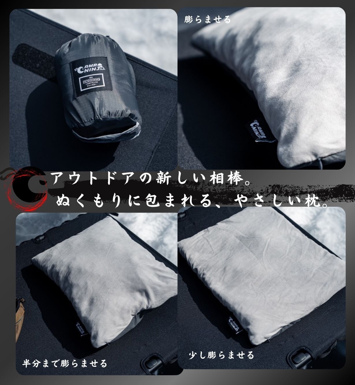 ニンジャピローは、たたむと手のひらサイズになり、わずか数秒で膨らみます。
