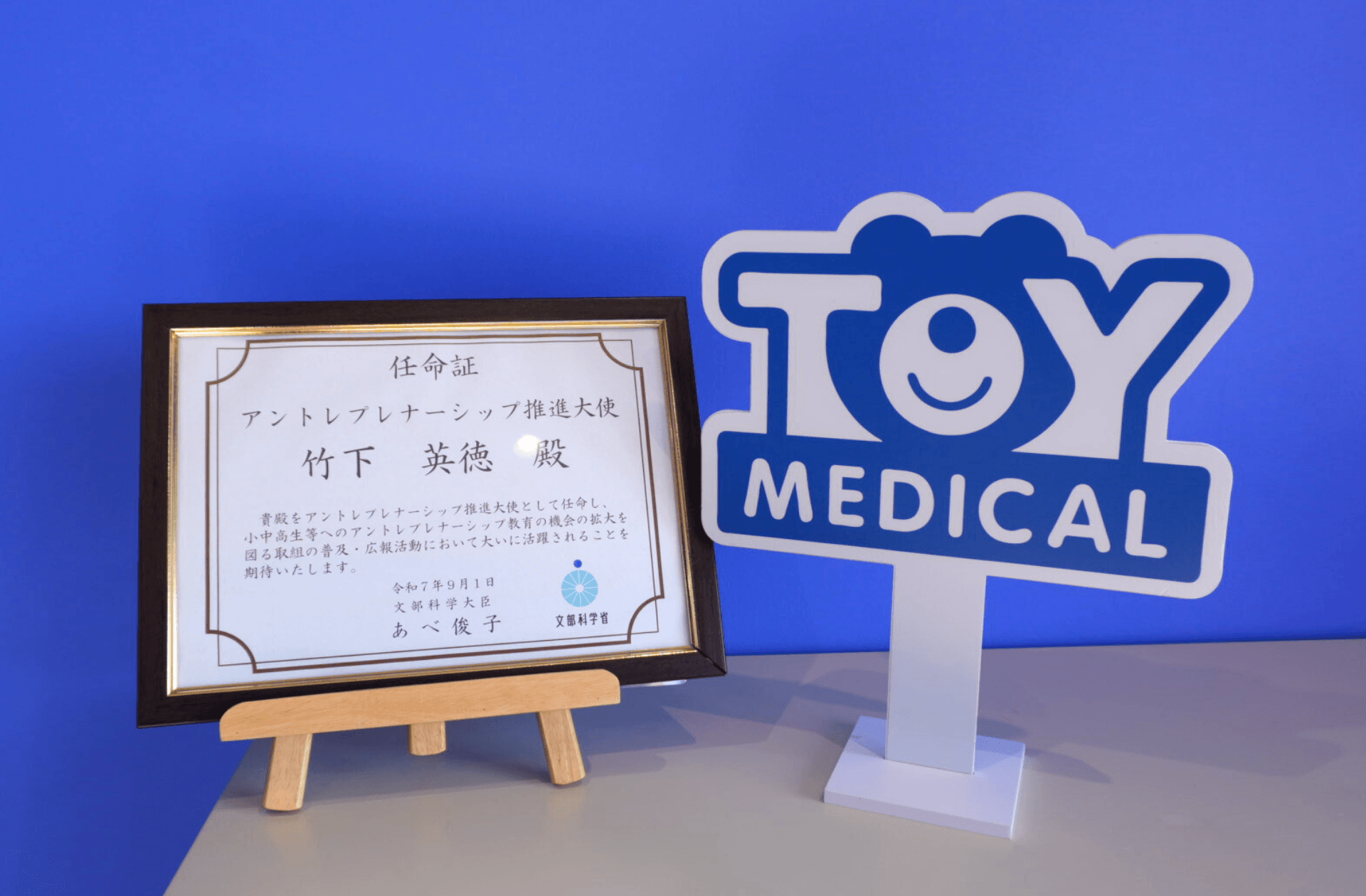 トイメディカル株式会社は、未来を担う次世代の育成と社会貢献活動の一環として、文部科学省が推進する「アントレプレナーシップ推進大使派遣事業」に参画し、この度正式に「アントレプレナーシップ推進大使」として任命されました。