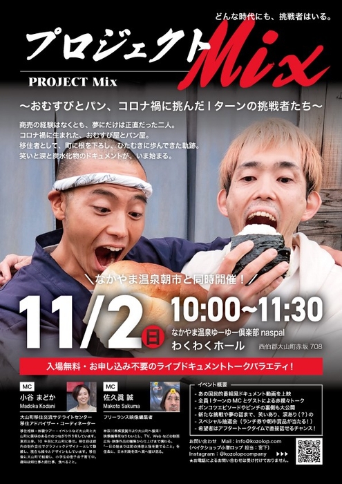 『プロジェクトMix ~おむすびとパン、コロナ禍に挑んだIターンの挑戦者たち~』 を開催します。