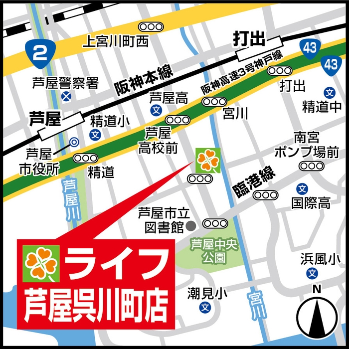 <店 名>「ライフ芦屋呉川町(あしやくれかわちょう)店」