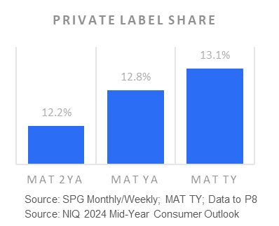 ホームケア市場全体では、上位メーカーの占有率が非常に高く、上位5社が市場全体の55%を占めている。しかし、プライベートブランドも高いコストパフォーマンスを武器に、大きなシェア(+13.1%)を獲得しており、ポストコロナ時代において高い成長力を示している。