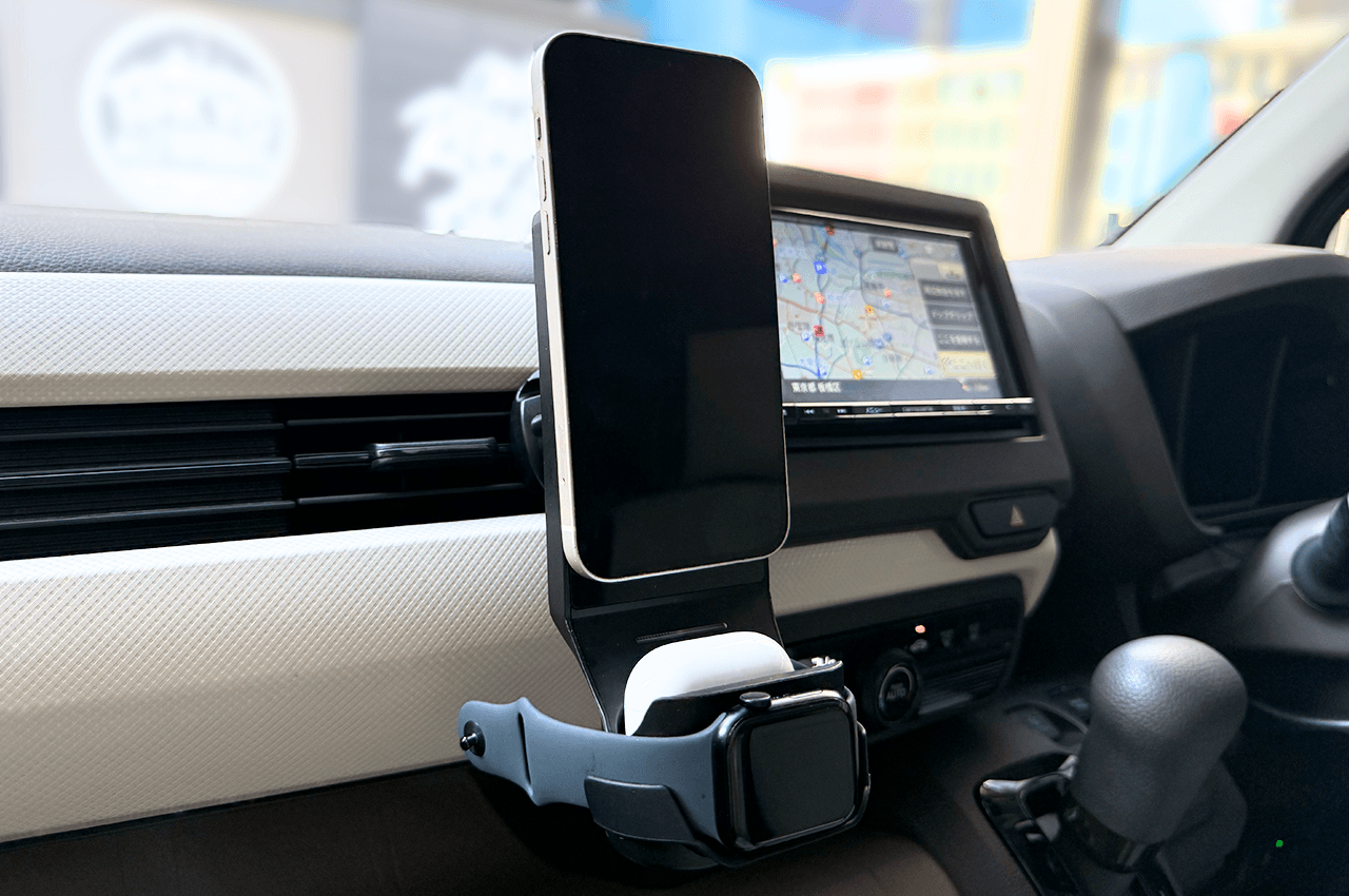 こうした課題を解決すべく、3台同時に置くだけで充電でき、配線の煩わしさもなく、車内空間をスッキリ保てる新しいソリューションとして、“移動しながらでも安全かつ快適に”という日常の悩みに応えました。