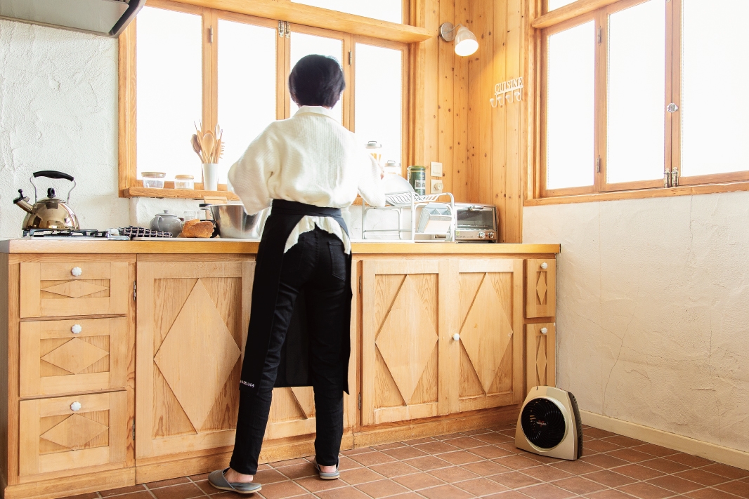 温風がすぐに出てキッチン全体がほんのり暖まると、家事もはかどります。