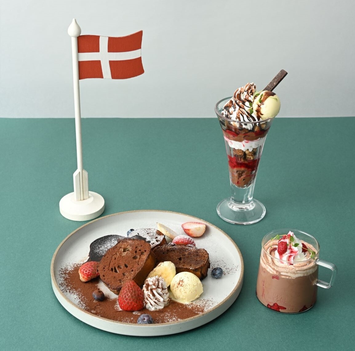 ※画像は、「フレンチトースト(チョコ)」「デンマークスタイルパフェチョコ&ラズベリー」「ホットベリーココア」