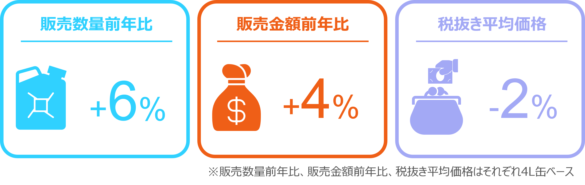 2025年2月の自動車用エンジンオイルの4L缶販売は、数量前年比6%増と堅調であった。店頭では同4%増と微増、インターネットでは同24%増と二桁成長を遂げた。4L缶の主要な粘度では、0W-20が数量前年比5%減であったが、5W-30が同6%増、10W-30は同33%増と伸長した。4L缶の税抜き平均価格は4,081円と前年同月から2%下落し、店頭では1%、インターネットでは9%下落した。4L缶全体の金額前年比は4%増となり、店頭では3%増、インターネットでは12%増であった。