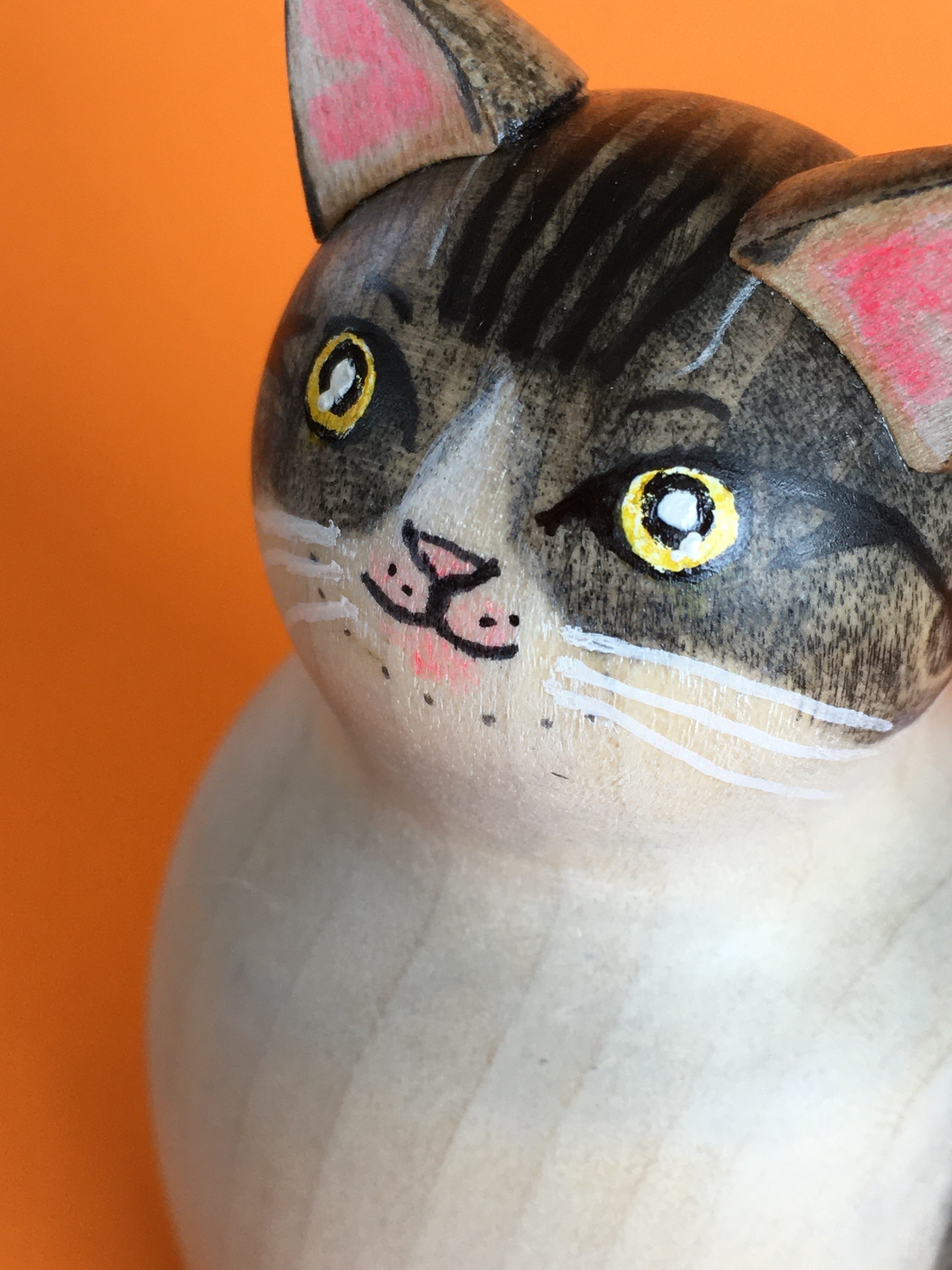 - 木目を活かした絵付けにこだわっていて、猫の毛並みのナチュラルな質感が優れもの。