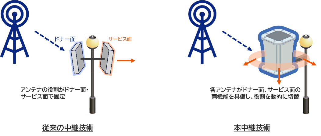 この特長により、従来の中継器で必要とされたアンテナの役割・送受信方向の調整を不要とし、中継器の設置場所の自由度を高めるとともに、工事設計の簡略化を実現しました。
