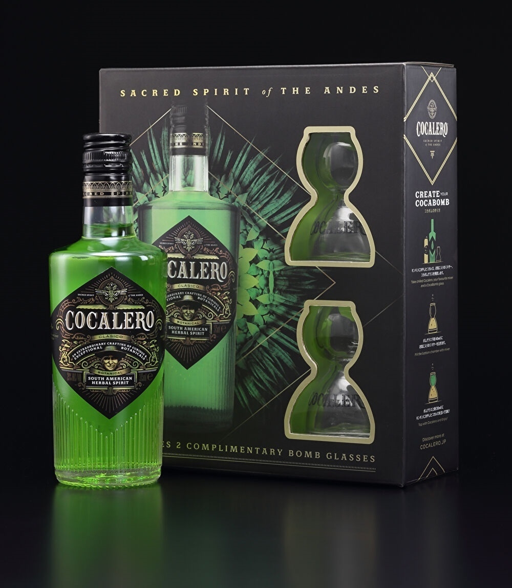 「コカレロ」はアンデスの山奥で栽培されている最高品質のコカの葉を含む17種類のハーブをブレンドしたプレミアムなボタニカルリキュールです。コカの葉の複雑な風味を生かすために、植物からエッセンシャルオイルを抽出するために用いる「蒸気蒸留」という特殊な製法を採用しています。