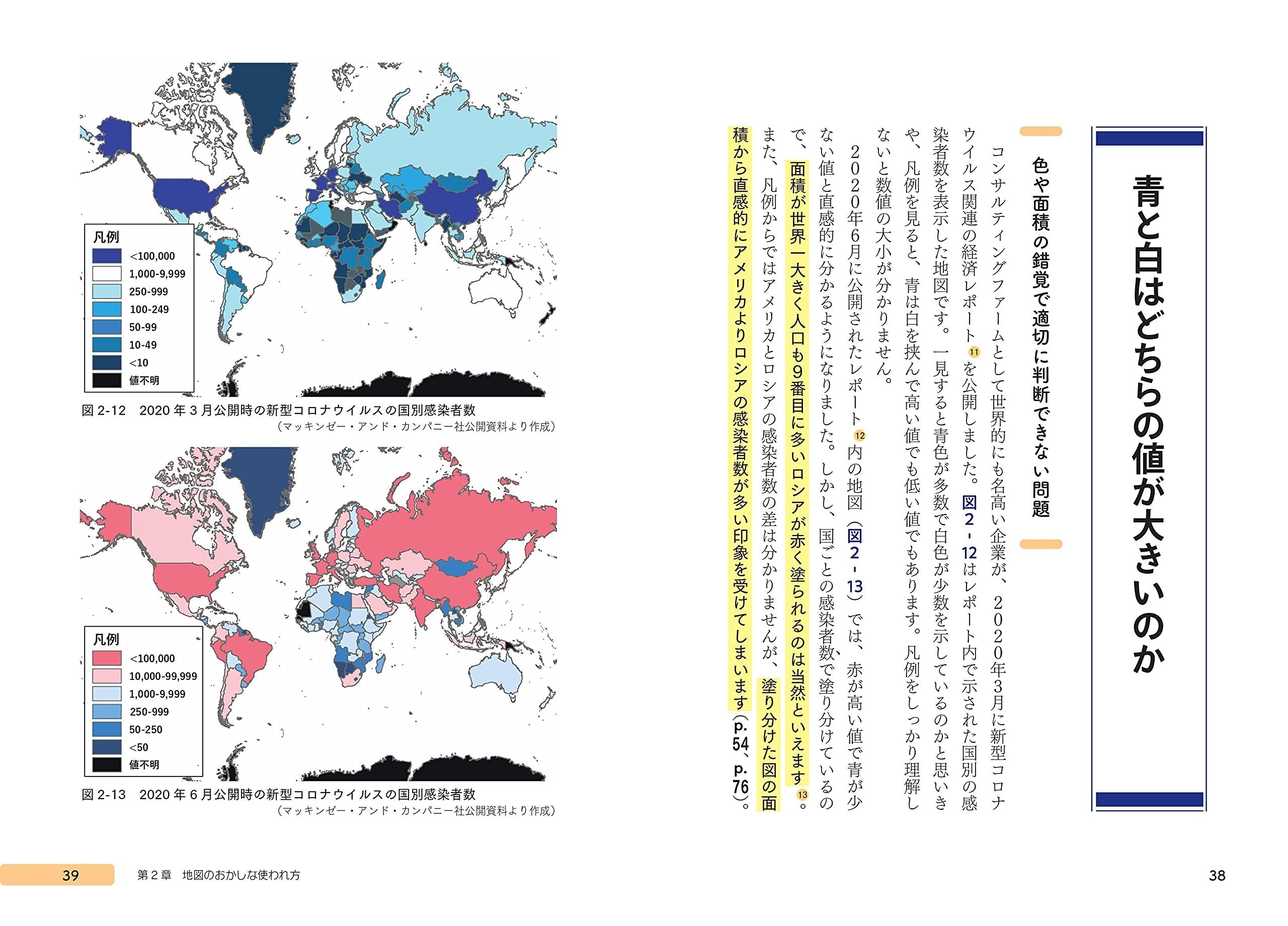 Googleマップの登場によって、「地図」は便利で身近なものになりました。しかしその一方で、地図を正しく読む力や正しく作成する力ないままに利用されたために、誤った地図や恣意的な地図が出回るようにもなりました。最近では、新型コロナウイルスの感染状況を表す地図も例外ではありません。こうした地図に騙されたり、実態を読み違えたりしないためにも、“読み書きそろばん”と同じように、地図を正しく扱えるスキル(=地図リテラシー)を身につける必要があります。