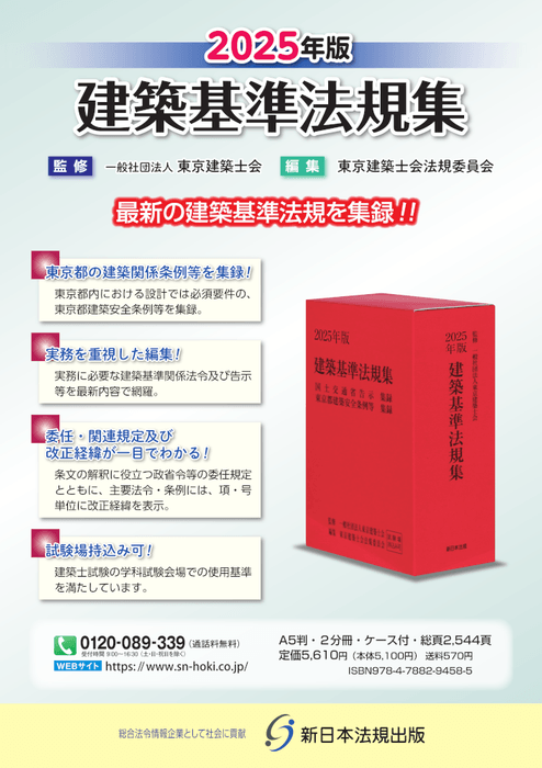 新日本法規出版株式会社(所在地:愛知県名古屋市中区、代表取締役社長:河合誠一郎)は、新刊『2025年版 建築基準法規集』を2024年12月19日(木)に発売いたしました!