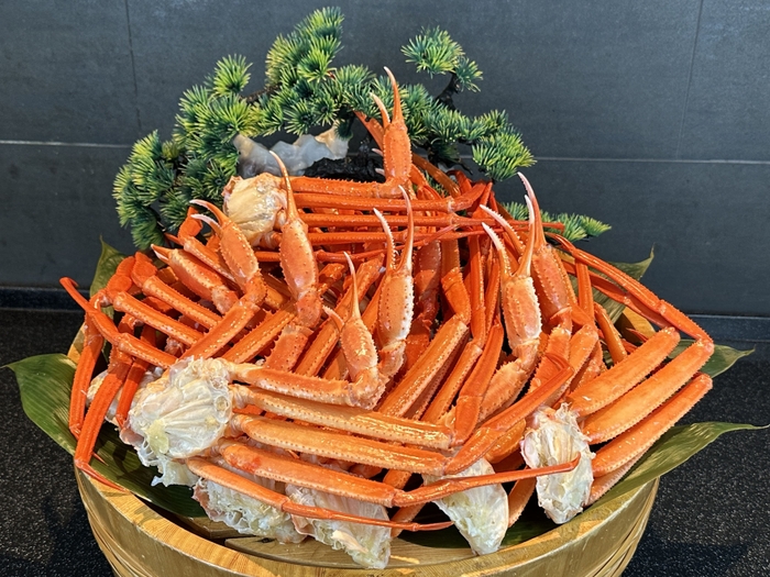 通常の会席料理に加え、ボイルしたズワイガニを食べ放題でご提供します。