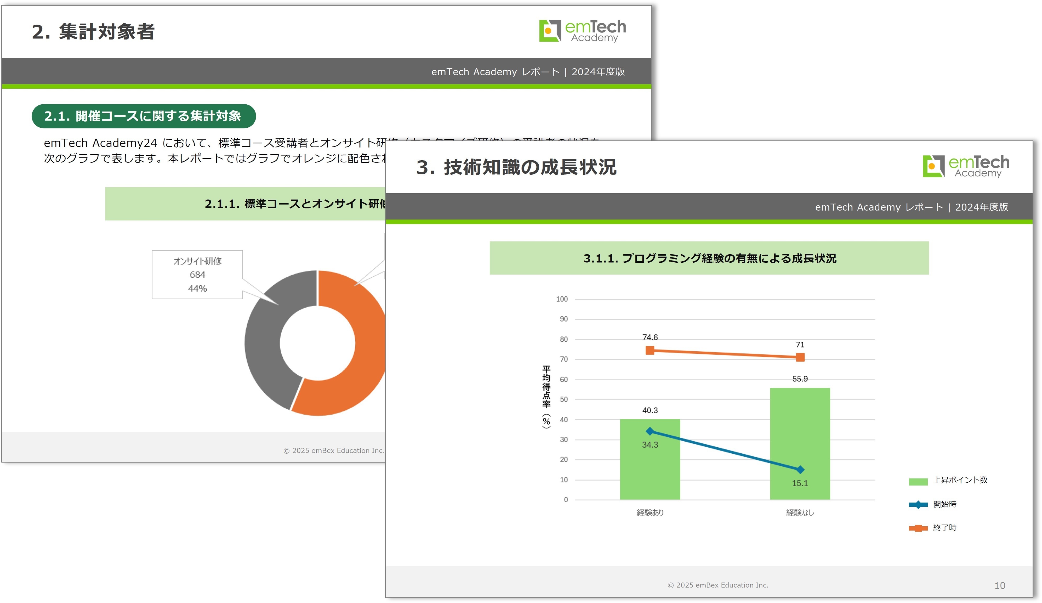 株式会社エンベックスエデュケーション(本社:東京都千代田区、代表取締役:荒木 泰晴)は、自社が主催するemTech Academy(エンテックアカデミー)の研修効果や状況などを集計したものを「emTech Academyレポート」として2025年3月17日に公開いたします。