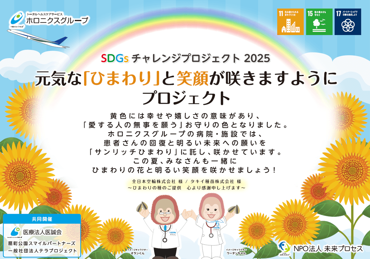 この活動は、ANAグループ 全日本空輸株式会社様よりひまわりの種のご提供協力にて開催をしています。ホロニクスグループ内外の参加者によって育てられたひまわりは、写真や思い出コメントとともに、映像作品としてまとめられる予定です。