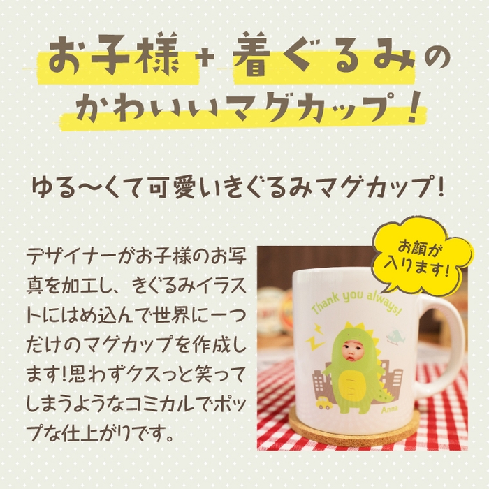 お子様の「顔写真」と「きぐるみ」を組み合わせた、世界に一つだけのオリジナルグッズ「きぐるみマグカップ」