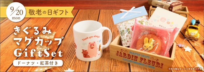 お子様のお顔、お名前が入る「きぐるみマグカップ」とスイーツ、紅茶がセットになった敬老の日特別ギフトセットをご用意致しました。