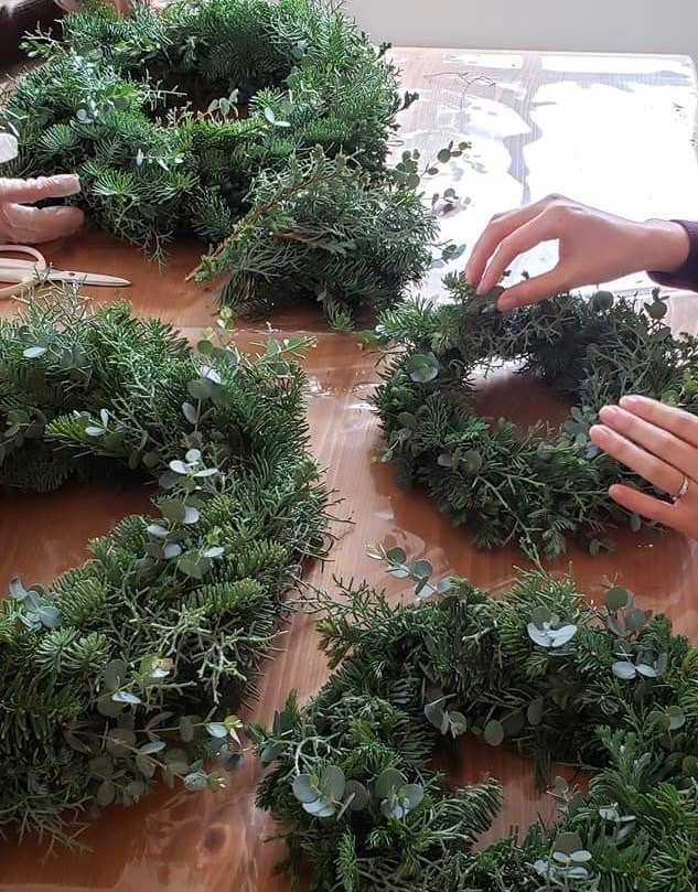 リースのフレッシュなエバーグリーンの香りとROSE GALLERYの規格外ローズから抽出した香り&オリジナルドリンクが楽しめる、クリスマスリースのワークショップを開催致します。