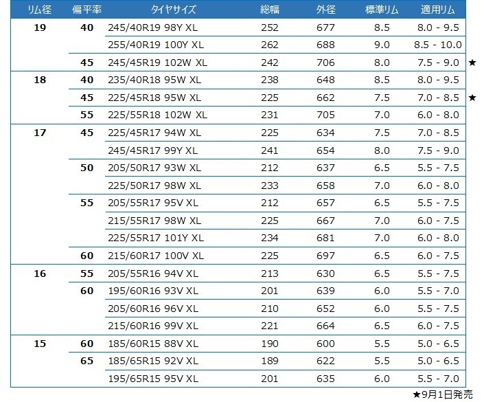 ●VECTOR 4SEASONS GEN-3 SUV:全5サイズ(うち1サイズは9月1日発売)オープン価格