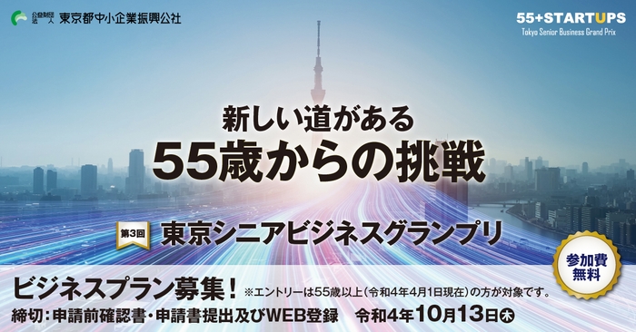 公益財団法人東京都中小企業振興公社(所在地:東京都千代田区、理事長:目黒 克昭)は、シニア層の働き方や人生設計をより豊かにするための、シニア世代の起業を後押しすることを目的に、55歳以上を対象としたビジネスプランコンテスト「第3回 東京シニアビジネスグランプリ」を開催いたします。