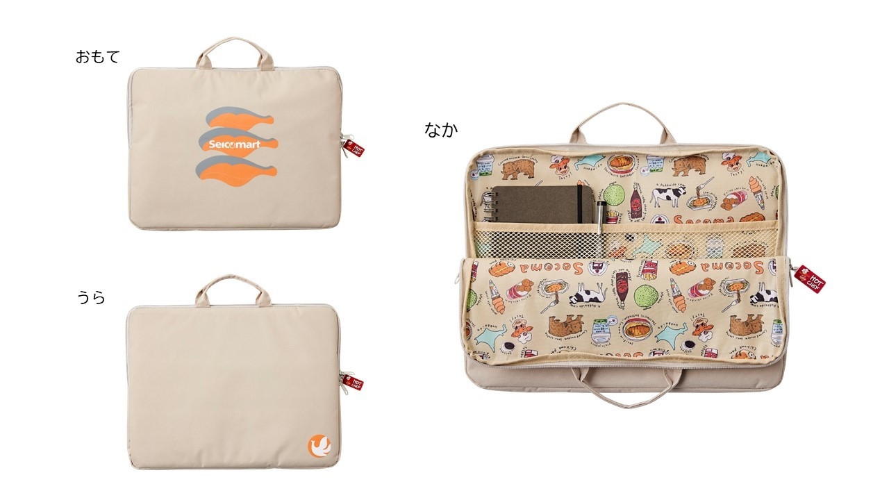 さらに、このムック本でしか手に入れることのできない「シャケ柄 A4 マルチポーチ」と「ホットシェフミニチャーム」の特別付録付き!「シャケ柄 A4 マルチポーチ」は昨年好評につき追加製造したあのエコバックに次いで、北海道らしい「シャケ柄」のデザインを起用しました。ポーチの内側も「ゆるセコマ」イラストの総柄で、北海道を感じられるデザインです。