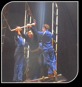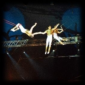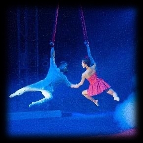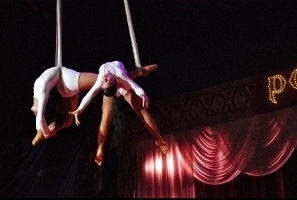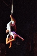 遥かキューバからやってきた褐色の女性二人が織りなす、トリッキーでしかも優雅な空中アクションの数々。天井から吊り下げられたストラップ(ベルト)だけを駆使した、命綱もないアクロバットに思わず絶句する。