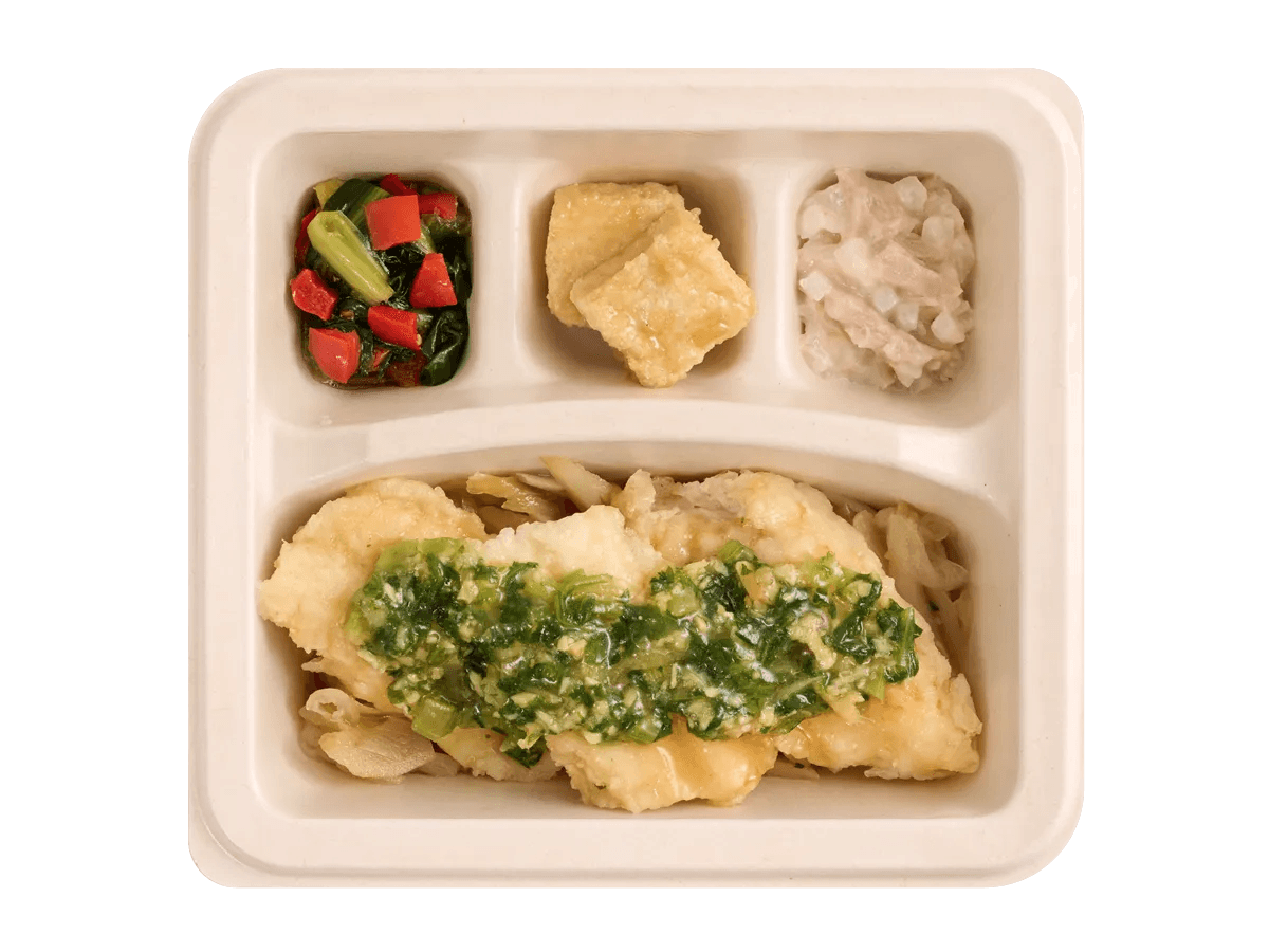 白身魚のから揚げに、生姜の風味が特長の香り豊かな醤油だれで仕上げました。身も心も温まるようなおすすめの一品です。