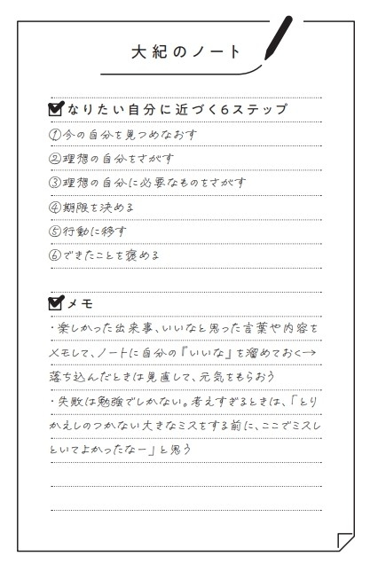 やりたいことが見つからず悩む26歳会社員・藤原大紀が、取引先のポジティブなギャル営業部長との出会いをきっかけに、自己分析ワークを実践。理想の自分を目指して一歩踏み出す過程を6つのステップで描きます。書き込みができるワークシートも収録され、読者自身も強みを明確にし、前向きな変化を実感できる一冊です。