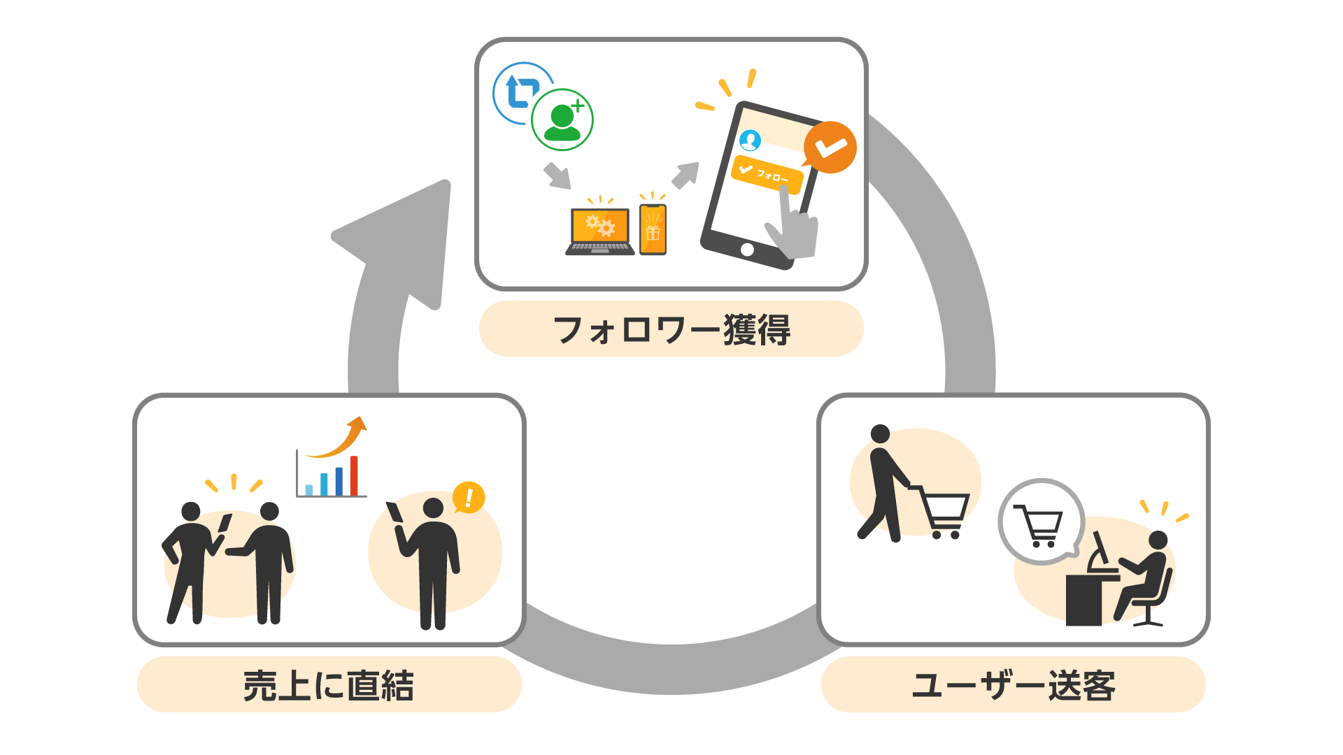 獲得したフォロワーの実店舗への来店促進、自社サービスへの誘導を効果的に狙うことができます。