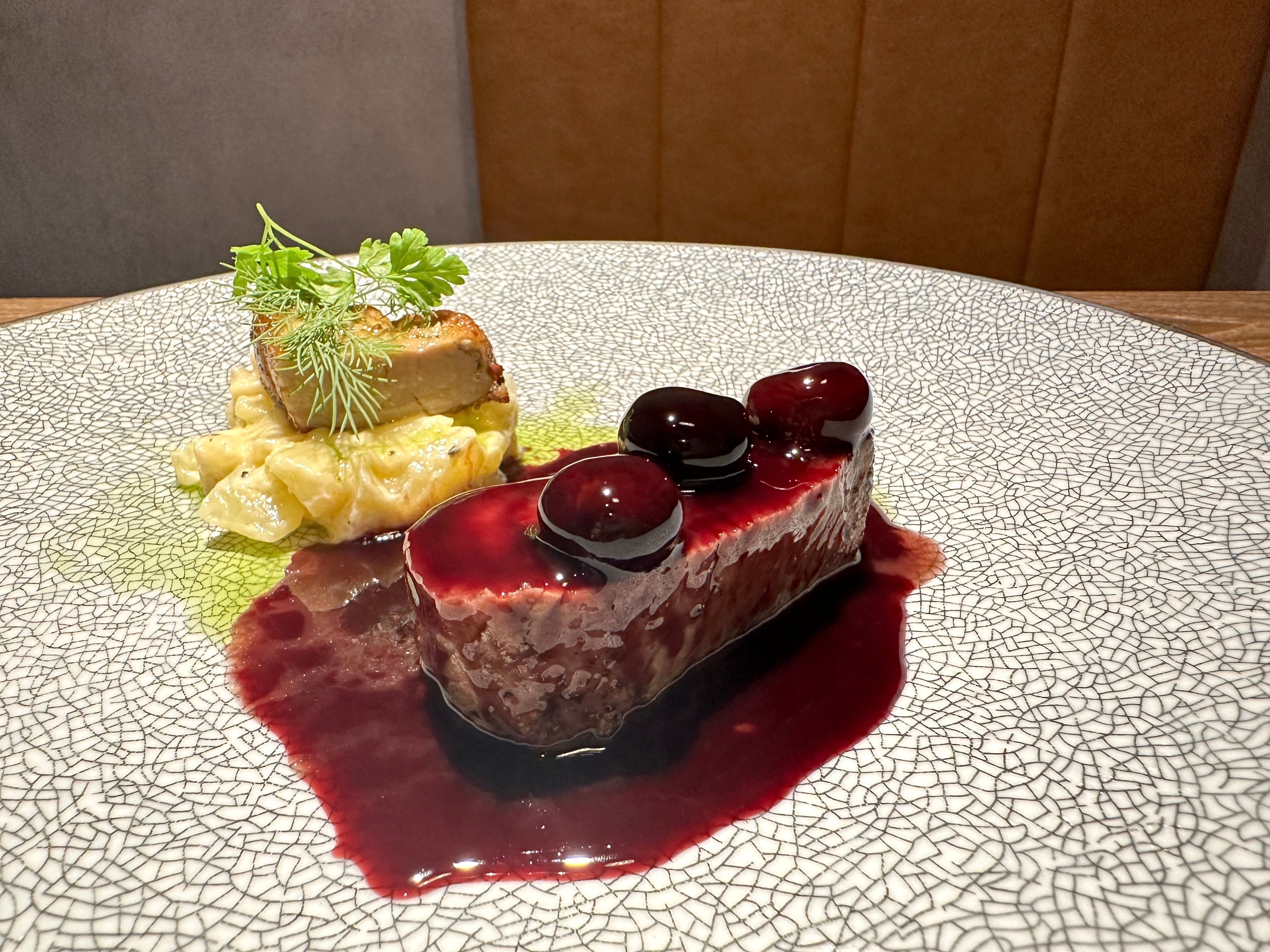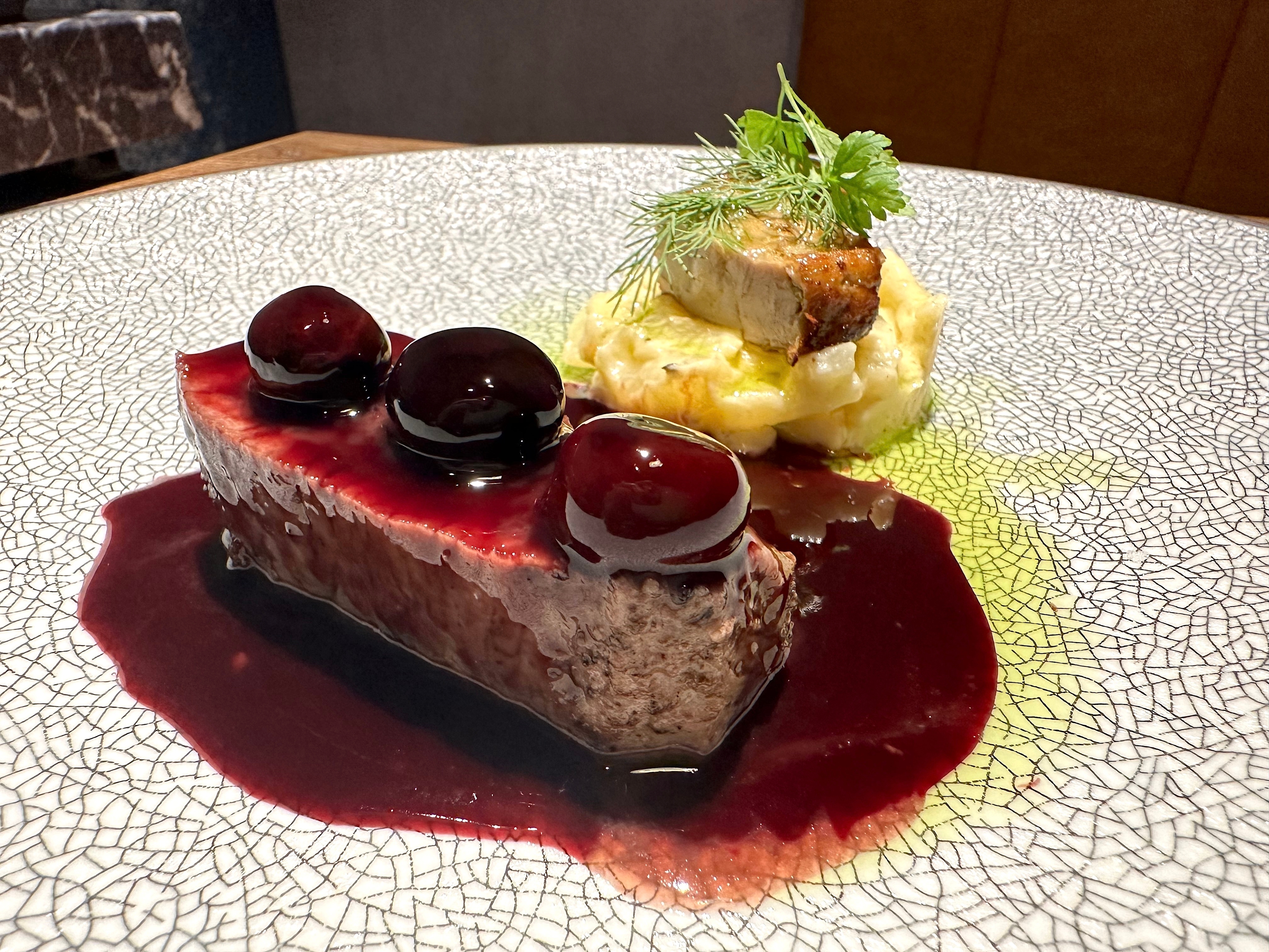 「厚真羊のロースト・クランベリーソース フォアグラとパースニップのリゾット添」