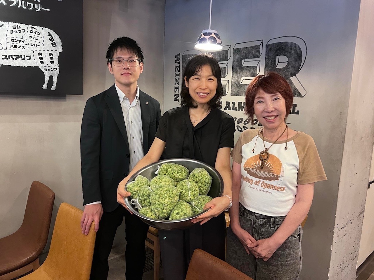 当店は2021年に「ご当地ビールで地元を盛り上げたい!」と一念発起して開業し、開店当初から店内の醸造工房でクラフトビールを自家醸造しています。3年前より、東京大学大学院 都市デザイン研究室を中心に「しのばずホッププロジェクト」として、上野界隈の企業や台東区などと連携しながら、地域のビルの空きスペースなどを利用してビールの原材料であるホップを栽培し、地元・不忍産のフレッシュなホップを使ったビール作りをスタート。