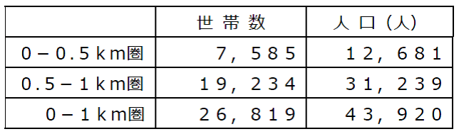 ・店舗から1㎞圏内は、単身世帯が63.0%、2人世帯が19.1%と、少人数世帯が8割以上を占めます。