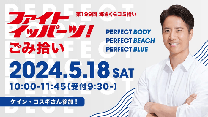 当社は、神奈川県江の島付近の海岸を中心にごみ拾い活動を行っているNPO法人海さくらの活動に共感し、2018年より同団体が主催する海の環境を守る活動に参画しております。7年目となる今年は、リポビタンDのCMキャッチフレーズ『ファイト イッパーツ!』の語呂に合わせて、5(ファ)月(イト)18(イッパ)日(ーツ!)に共催イベントを開催することとなり、スペシャルゲストとして当社リポビタンブランドのCMタレントとしてご活躍いただいているケイン・コスギさんに初めて本企画に参加していただきます。