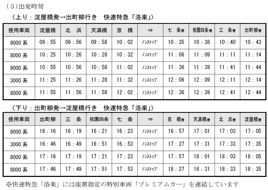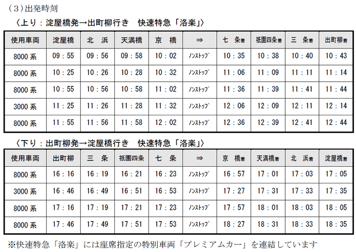 (2)停車駅:淀屋橋、北浜、天満橋、京橋、七条、祇󠄀園四条、三条、出町柳