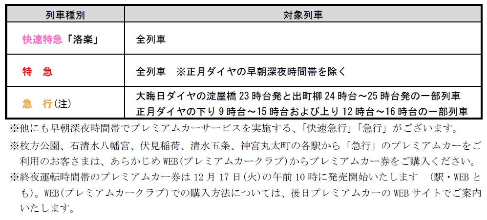 12月上旬(予定)から京阪電車Webサイト(https://www.keihan.co.jp/traffic/)で検索できます。