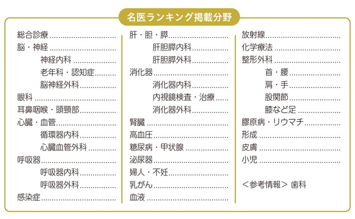 『国民のための名医ランキング 2021~2023―いざという時の頼れる医師ガイド 全国名医1045人厳選』では、総合診内科以外にも、各34分野を掲載しています。