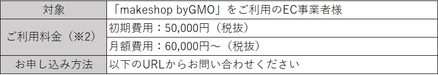 (※2)別途、「makeshop byGMO」のご利用料金がかかります。