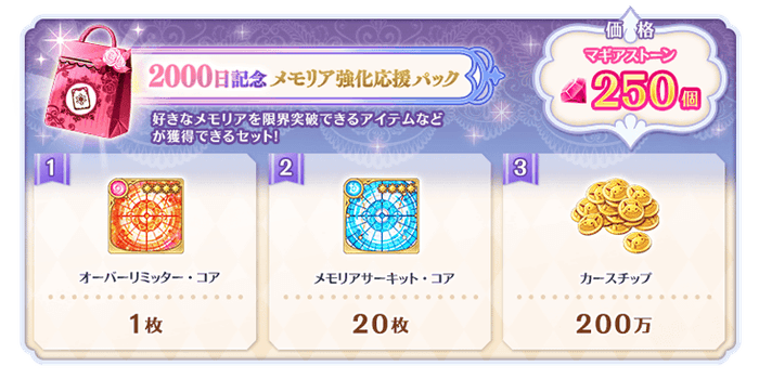 ※「2000日記念 メモリア強化応援パック」のご購入はおひとり様2回までです。