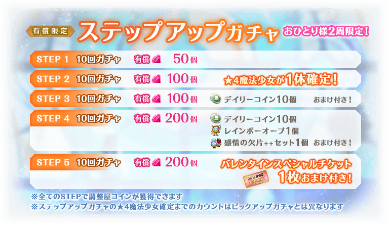 ※★4魔法少女や期間限定イベント等で入手可能な一部魔法少女の「デスティニージェム」は交換の対象外です。