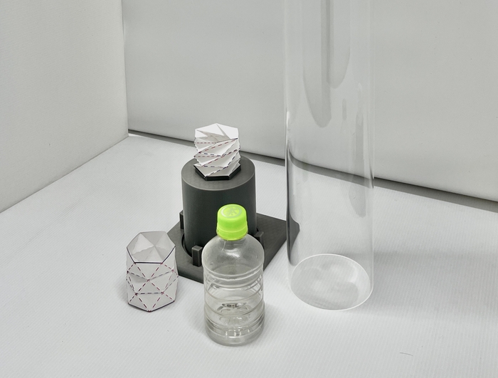紙を折ったときに生まれる幾何学的パターンを、モノの表面構造(サーフェス)に応用することで、折り畳み性や衝撃吸収性、吸音性など様々な機能を付与することができます。