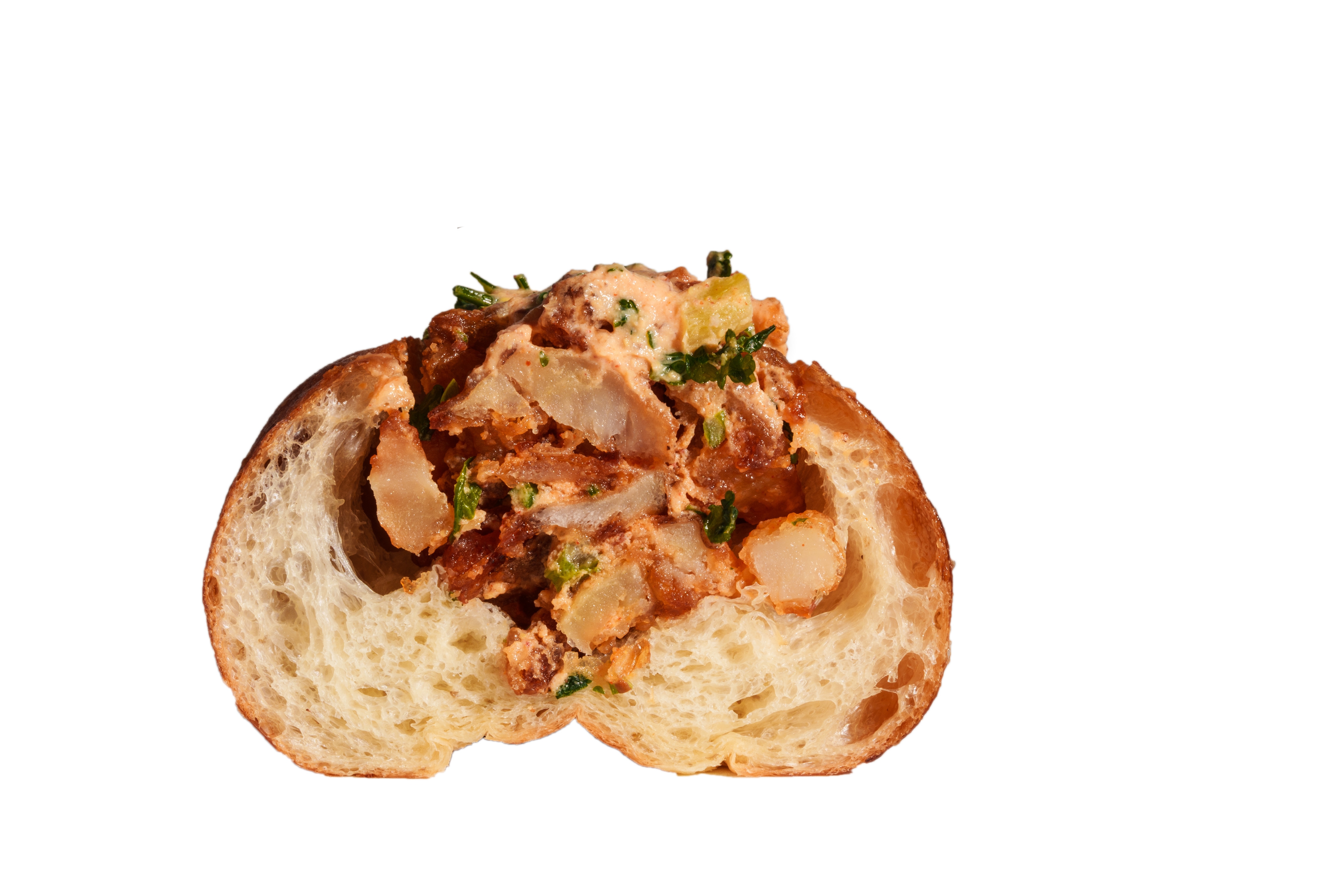 特徴 :ヴィーガン。揚げたてミニポテトにセロリと生パセリのタルタルを加えたサクサクの新食感のポテサラです。