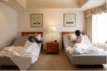 睡眠・リラックスシーンで親しまれている100%自然由来ホップアロマ配合の、寝室用アロマシリーズ「まどろみホップ」の香りに包まれた空間です。