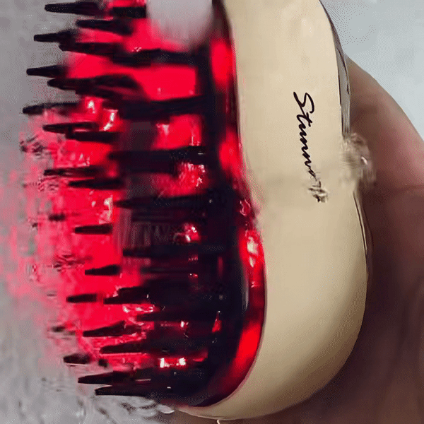 まず目を引いたのは、キラキラと輝くデザイン性の高さ。しかし実際に体験してみると、見た目以上に心地よい使用感に驚かされました。さらに、乾いた髪・濡れた髪のどちらにも使える乾湿両用タイプで、シャンプーブラシとしても活用できるなど、実用性にも優れていました。