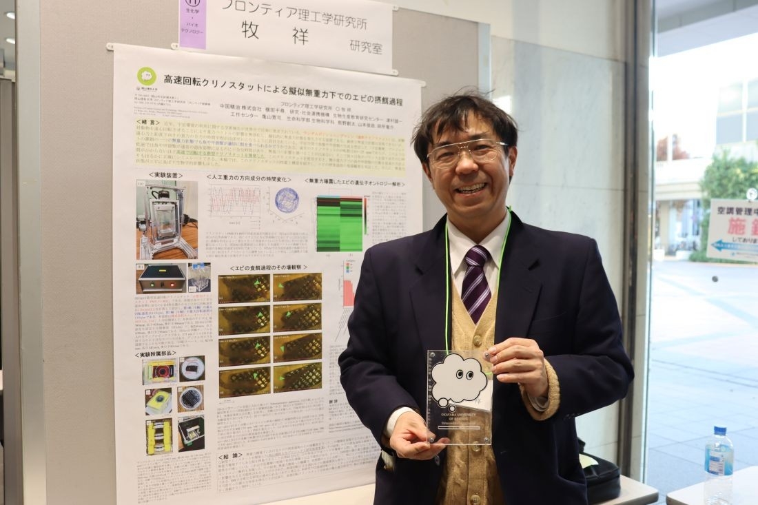 「UAV自律飛行による建築物外壁の自動点検システム」(電気電子システム学科・クルモフ バレリー教授)▽「塑性加工を援用した材料表面の選択的合金化の検討」(機械システム工学科・寺野元規准教授)▽「高速回転クリノスタットによる擬似無重力下でのエビの摂餌過程」(フロンティア理工学研究所/通信教育部情報理工学科・牧祥教授)▽「高血圧症の新たな治療標的因子」(獣医学科・向田昌司講師)