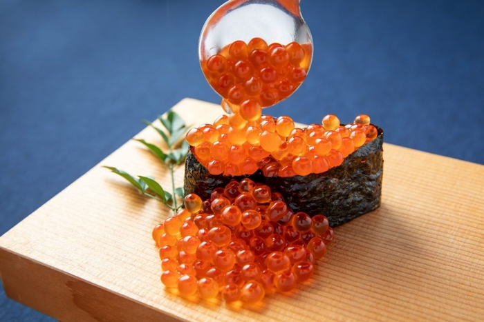 北海道では、寿司や海鮮丼にいくらをこぼれるほど豪快に盛り付けることを「こぼれいくら」と表現します。当フェアでは、国内で水揚げされ、丁寧に醤油漬けにされたいくらをシャリからこぼれるくらいに盛り付けた寿司を提供します。いくらの濃厚な味わいと、プチっと弾ける食感が楽しめる一品です。